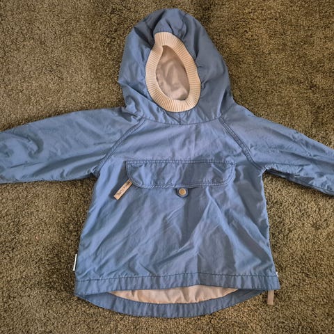 Selger MINI A TURE vår/sommerjakke i str.98, modell wiam. Farge mintgrønn. Ingen hull, men synlige bruksmerker på fremsiden av jakken. Se bilde! Mulig noen av flekkene kan forsvinne om man «skrubber» med f.eks. sitronsåpe - har ikke forsøkt dette.