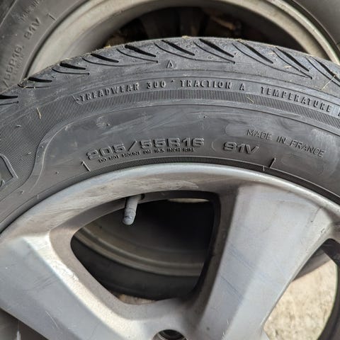 Dekkene selges med felg.Har også gode vinterdekk til samme bil med pigg på felg.