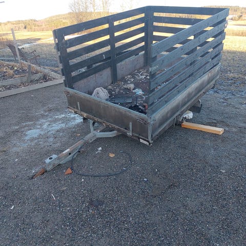 Dieseltank med hjul og tilhenger drag. Dårlige hjullager. Ikkje godkjent til å dra etter vei. Tank 1200 liter.