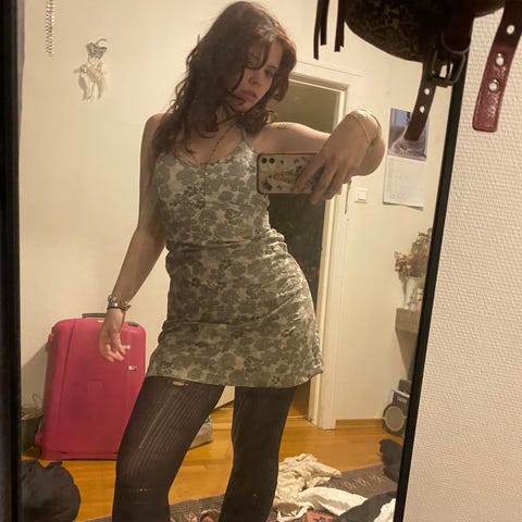 En kul cargo kjole fra 2000-tallet, ideell for sommeren. Den kombinerer komfort og stil, med et praktisk design og en vintage touch.