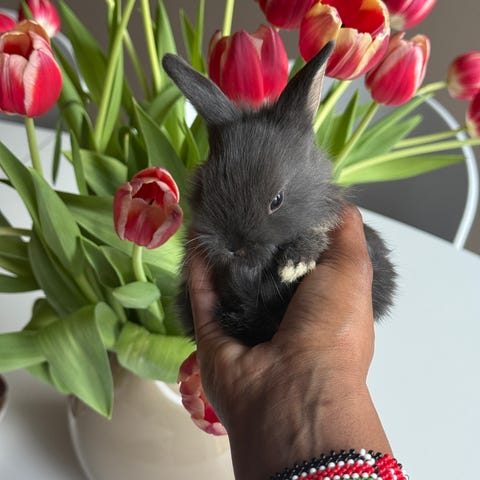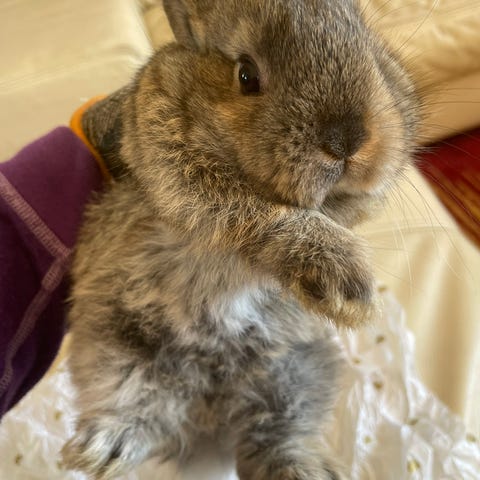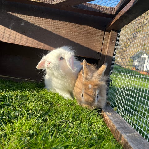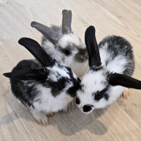 Vi har to kull med eventyrlystne kaniner. Første kull er født i januar, og andre kull er født i februar. Både gutter og jenter. Blanding av dvergvedder og hermelin. Farger: Hvit/grå, beigemelert, sort, og brun. Ta kontakt ved interesse. Alle er friske og med god helse. De har bodd i utehus helt siden de ble født, men har i perioder vært inne, eller løpt ute i Hagen. De er godt vant med barn 💛