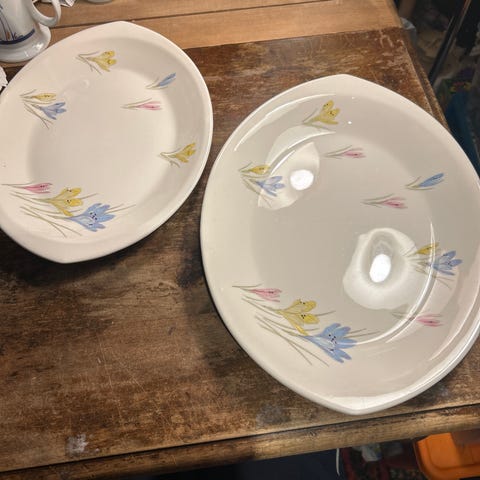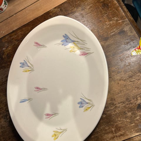 Pen stort fat i serien Krokus fra Stavanger flint. Rolf design. Mål 34-26 cm. Selges 150,- ,- Sender post. Har mer Krokus ute.