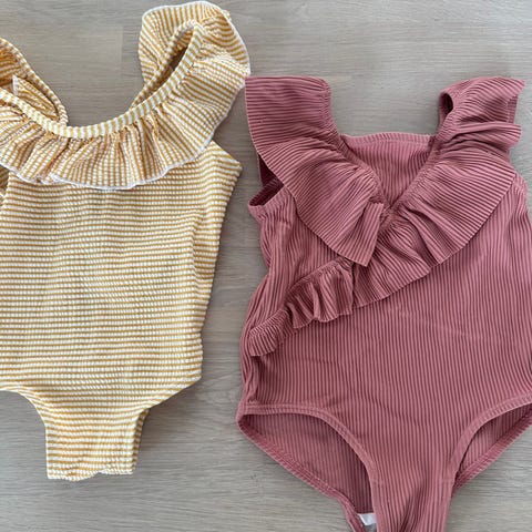 To nydelige badedrakter fra Lil Atelier i str 92 selges. De har noen svarte prikker i stoffet, tror dette er sand, se bilder. På den mørke er det kun synlig på trusedelen.