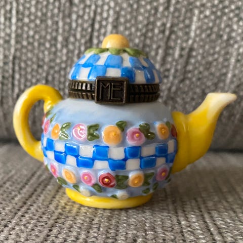 Mary Engelbreit miniatyr tekanne. Ca 4 x 5.5 cm.