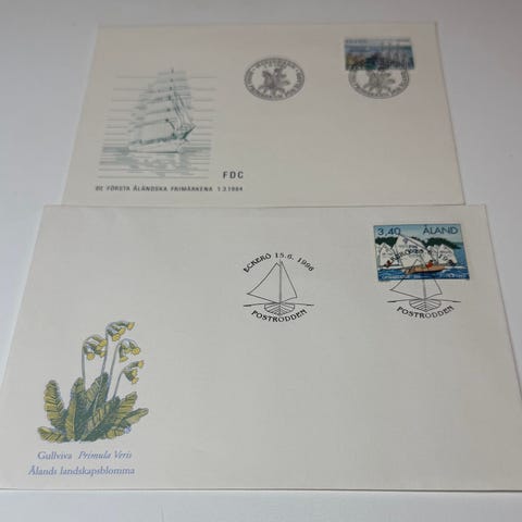 Komplett samling med FDC og maxikort fra 1984 til 2017 sitter i album fra Åland totalt 463 stk.