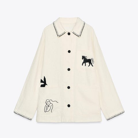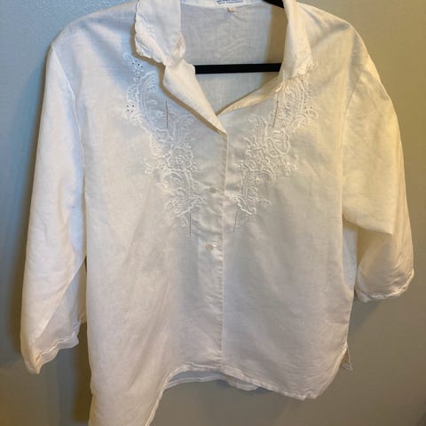 Nydelig behagelig Lilla Fransk Romantisk Tung Broderi Blomsterskjorte for Kvinner Løstsittende og Slankende