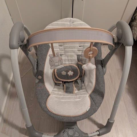 Lightly used baby swing, sized appropriately for infants and babies up to 9kg