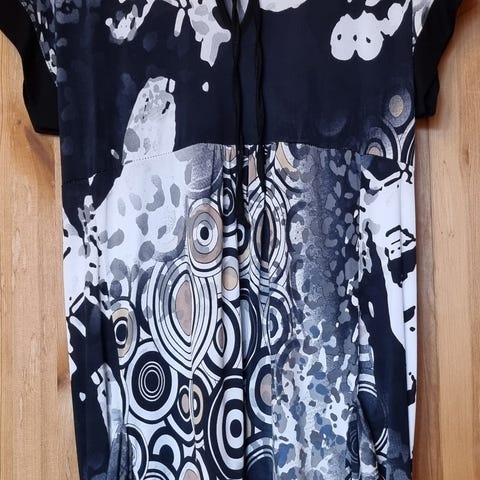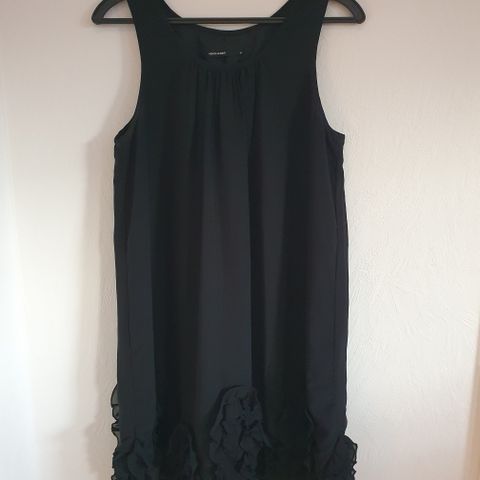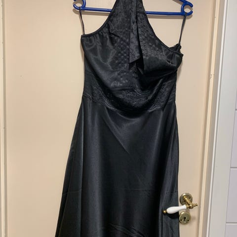 Finner ikke strl i den. Men ser ut som M. Fint glatt stoff. Hempe til belte, følger ikke med. Glitter i v en i halsen