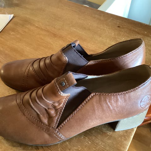 Komfortable sko med 2-3cm hæl. Dus blå farge. Fine til både pynt og hverdag.