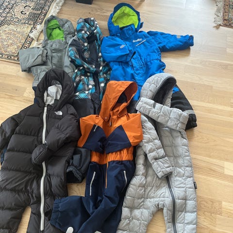 1 vår/høstdress fra Helly Hansen med forsterket område på knær og rumpen. Str 98, men syntes den var god i str. Intakte fotstrikk og uten anmerkninger.