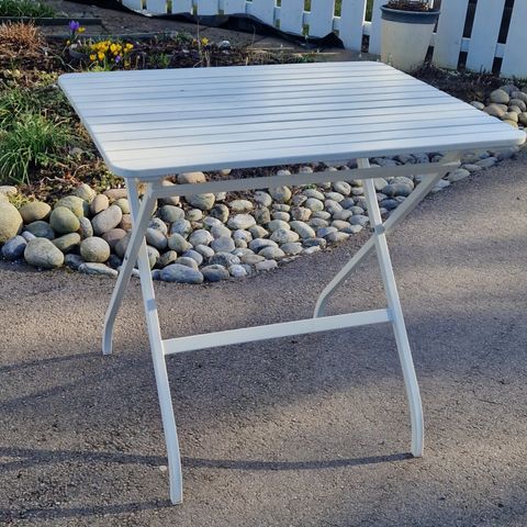 Delia Bord i Khaki fra brafab selges. Bordet er laget av pulverlakkert aluminium og har 4 bein som enkelt kanskrus av uten bruk av verktøy. Alle bena har justerings-skrue for ujevne underlag. Mål: 78x78cm. Høyde: 65cm. Bordet selges grunnet plassmangel. Kan hentes i Moss.