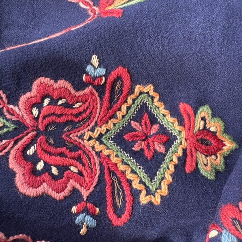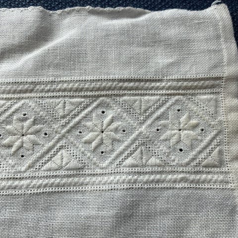 Håndbrodert duk i nydelig blomstermønster ♥️ Høyde 166 cm. Bredde 123 cm