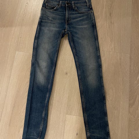 Pent brukte Levi’s 501- jeans selges rimelig. Str. 23/30. Lukkes med knapper. Ingen skader.