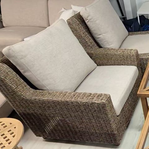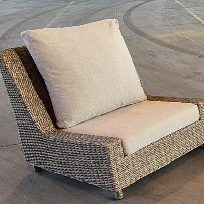 Solstol med pall fra Brafab selges. Den sandfargede puten gir fin kontrast til kunstrottingen. Brukt som utstilling i showroom, ikke butikk. Aldri brukt privat. Stolen har alltid blitt oppbevart innendørs. Fraktet mellom showroom og fotografering og har noen småmerker etter transport. Stolen har aluminiumramme med flettet kunstrotting. Stolen kan reguleres i ryggen og har en løs skammel som kan skjules under stolen. Selges grunnet plassmangel. Kan hentes i Moss