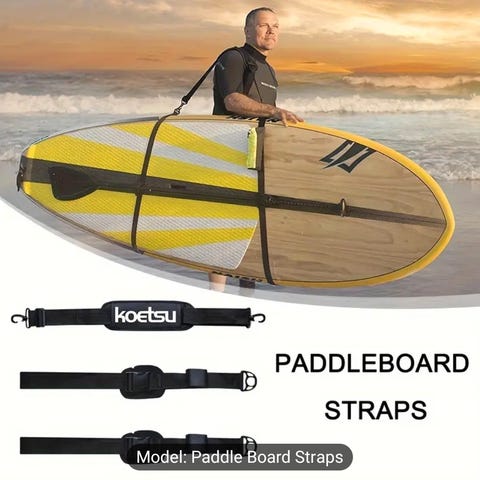 Heavy Duty Adjustable Paddleboard Carry Strap - 20.32x30.48 cm Iron Shoulder Sling for Stand Up Paddleboards, Surfboards, SUPs, Kayaks & Longboards - Easy Installation with Buckle Release Mechanism, 2D Flat, Perfect for Room Decor. Sendes Kjapt!