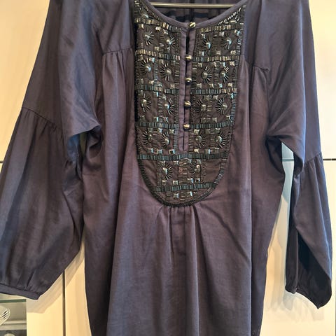 Nydelig sommertopp fra Stella Nova. Så vidt brukt én gang, men har noen «striper» stoffet. Ser ikke helt ut som løse tråder, men er usikker (se siste bilde). Det er ikke noe man tenker over. Selges derfor veldig rimelig. Ste. 38. Silke