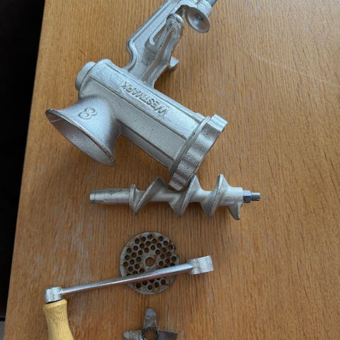 Kjøttkvern, håndvisp og håndrasper selges samlet