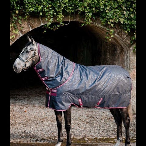 Horseware Amigo regndekken med 0 gram i størrelse 115 selges. Dekkenet er vanntett og helt, kun solbleket. En liten flenge (1×2cm) bak til høyre på dekkenet er lappet med dekkenlim.