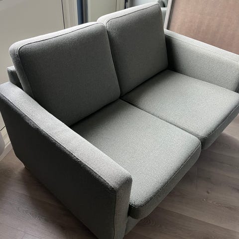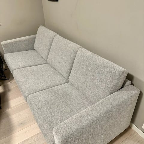 Flott sofa til salgs. 2.5 seter. Kjøpt på Skeidar. Sofa er i meget slitesterke stoff av bomull. Sofaene har vært tildekket med pledd. Stått i et dyrefritt og røykfritt hjem.