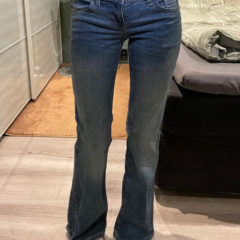 Klassisk Levis med rette ben. Pent/lite brukt. Veldig fin bukse i pen, mørkeblå farge. Flatterende fasong W28/L32