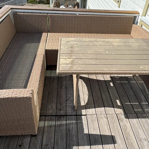 Selger et flott hagebord da vi ikke har bruk for det. Bordet er veldig flott i treverk men kunne treng litt kjærlighet. Litt beis eller maling kan gjøre susen. Ellers superfint! Har stått skjermet for regn og sol hele sommeren.