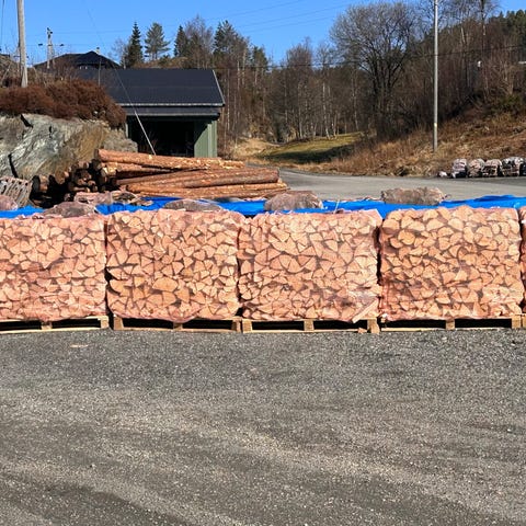 - Veden er kappet i 30 cm lengder og veier ca 300 kg (1m3).