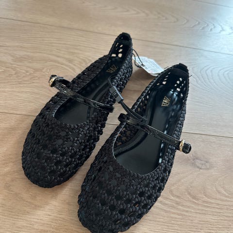 Svarte nye ballerinasko med blonder fra Mango i str 38. De er ubrukt! Førpris 699