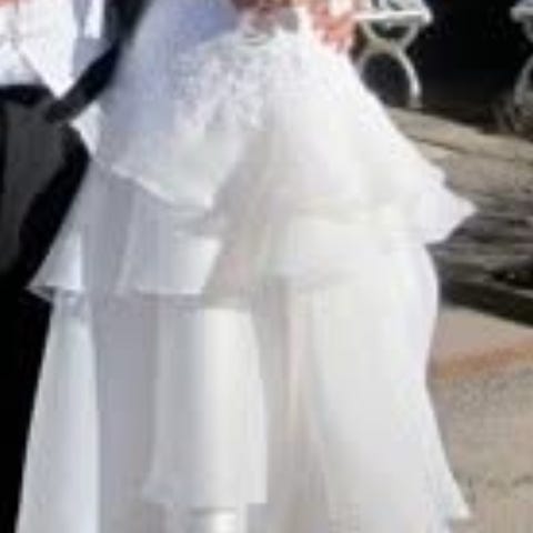 Selger denne helt unike Saint Laurent brudekjolen i 100 % silke. Runway spring/summer 2023🤍 Verdens vakreste brudekjole (kan også brukes som evening-dress). Fargen er som på første bildet. Den har en veldig svak flekk (ikke synlig med mindre du har veldig skrapt lys) på siden, men det vil trolig gå bort i rens, men derfor den selges billig. Nypris; 39 000 kr. En helt unik mulighet til å kjøpe en helt unik brudekjole ingen andre har!