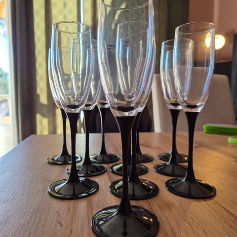 5 stk selges samlet. Retro fra luminarc. Uten skår hele og pene med sort stett. 22 cm høy.