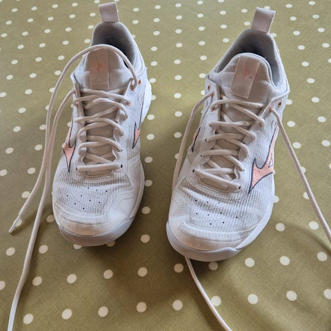 Søkeord: sko, innesko, hallsko, volleyball, håndball, mizuno, hvite