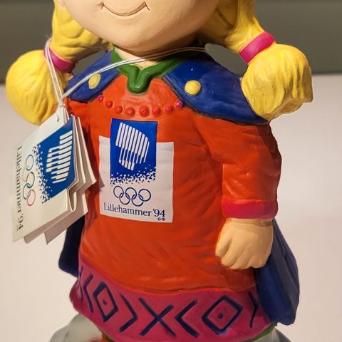 Ca 21 cm. Sparebøsse KRISTIN / jente OL 1994. Uten nøkkel 🔑