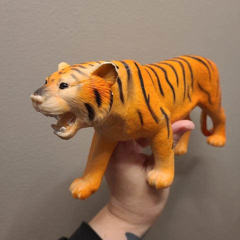 Naturtro leketiger søker nytt hjem. Veldig naturtro, hundene i huset går berserk når de ser den. Fin stand.