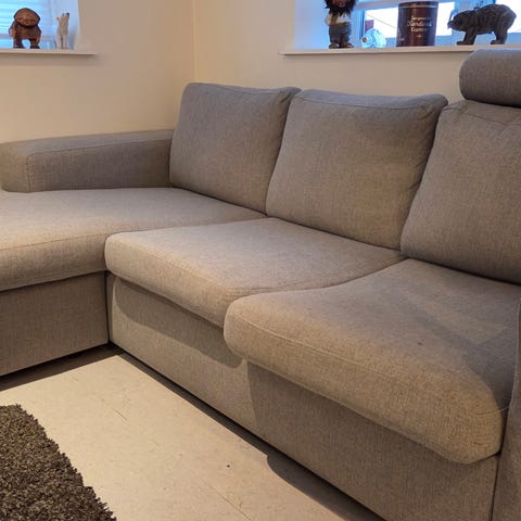 Delikat pen sofa. Tekstil VIC mørkegrå 28, med knapper og sorte ben. Kjøpt for 3 år siden på Skeidar, kvittering medfølger. Ingen slitasjemerker. Må hentes