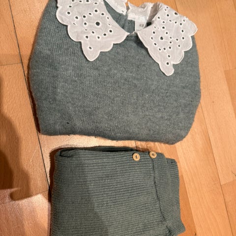 Nydelig sett i bomull fra danske Woodstrup. Pent brukt, finner ingen flekker. Kan brukes av begge kjønn.