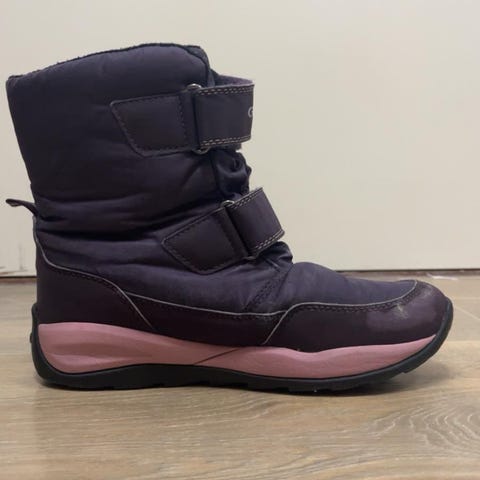 Supre vintersko til jente str 36. Fra Geox, lette med god såle. Borrelås og litt høyde rundt ankel så de sitter godt. Veldig pent brukt.