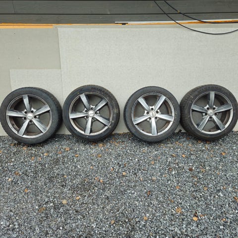 Felgene er i god stand og vært på dekkhotell. Det står dekk på felgene nå, men disse er eldre og anbefales å byttes, så selges hovedsakelig som felger. Dekkene følger med.
