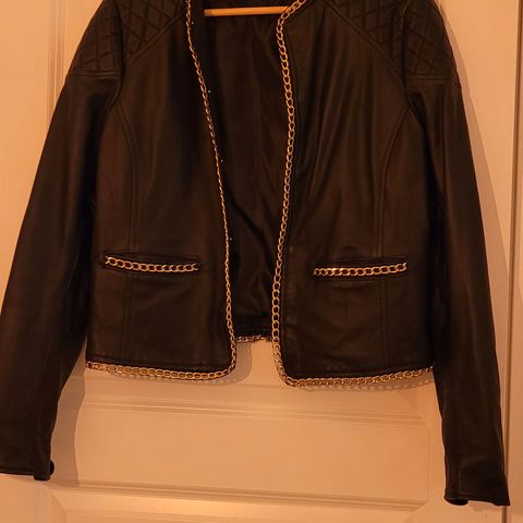 Svart Skinnjakke fra Superdry. Merket str. 44. Passer en størrelse L/XL. Brukt kun et par ganger. Mål er lengde 57cm, bredde fra under arm 52cm og lengde fra under arm 47. Ny pris 2500kr