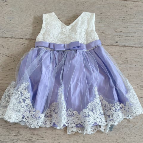 Kjempefin kjole i str 86 cm, 1,5 år, 18 mnd med et fint knytebånd. Kun brukt et par ganger, i god stand. Kan sendes dersom porto dekkes.