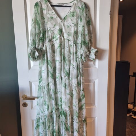 Hvit og grønn kjole med blomster. Helt ny, med lappen på. Ny pris var 899.