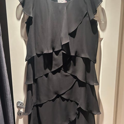 Lekker kjole for fest eller sommer! Foret innvendig/underkjole med flotte detaljer på ytterkjole, a’la chiffongstil. Lekker hvis man bruker et svart belte i livet også. Kjolen er ment til å vise bare/nakne skuldre. Ny fra forhandler. Str. cirka 44 (42-46). Hentes/sendes med Posten kr 73,-. Betaling: Vipps. Se bilder!! 🌟🌟🌟