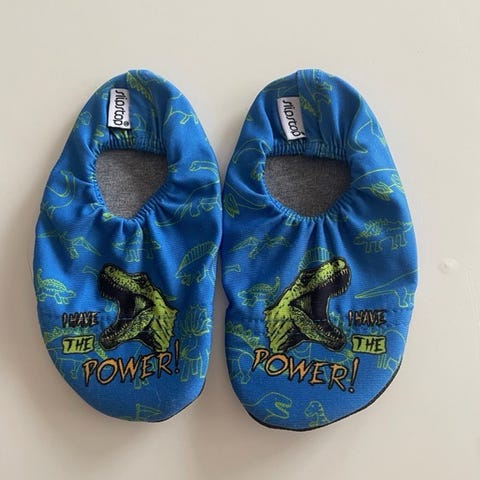 SlipStop svømmesokker. Sklisikre og hurtigtørkende. De er brukt lite, men har fått merke etter navnelappen inni. Står ikke størrelse noe sted, men vi brukte de i fjor sommer når min brukte 23.