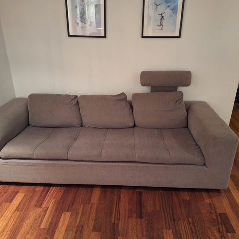 Sofaen gis bort, må hentes på Sinsen. To personer trengs for å bære den.