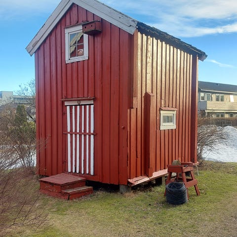 Vakkert stabbur fra Hell til salgs. Stabburet står nært vei slik at det er enkelt å flytte.