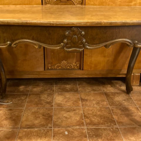 Gammelt spillbord selges. Dybde er 44 cm. Oppslått x 2. Lengde 85 cm og høyde 77 cm. Åpen for bud