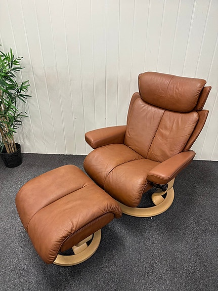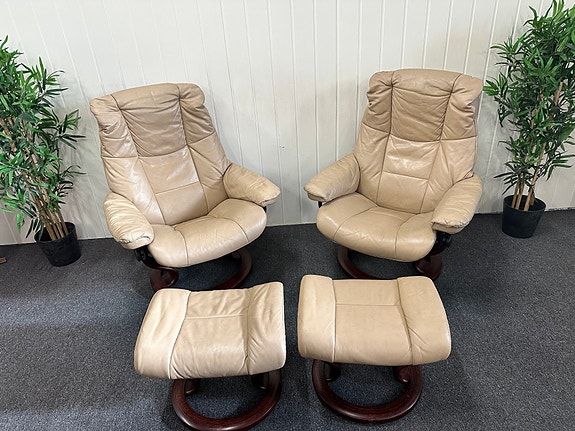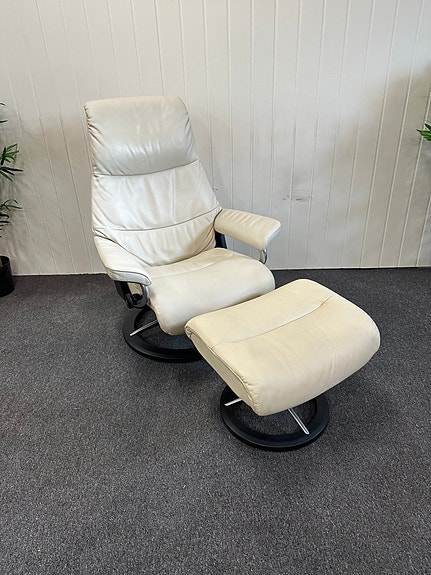 Fantastisk Stressless® Reno (L) lenestol med fotskammel og Stressless® Forhøyningsring Classic base.