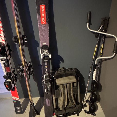 Head Caddy Junior twintip ski på 161 cm med Tecno pro bindinger, Salomon X-access R60 støvler med fire spenner i str 26,5 (ca str 40), Völkl staver på 120 cm. Noen år gamle, men ikke vært brukt siden 2022. Selges for 3500 kr komplett. Kan fraktes fra Lom til Lillehammer.