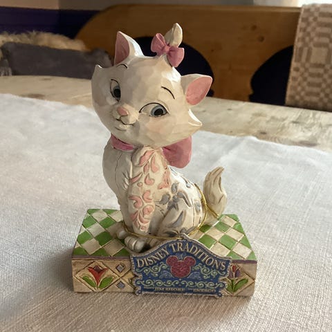 Marie fra Aristokratene er en Disney filmklassiker. Her er en søt figur av Marie med prinsessekrone. Veldig fin figur. Kun stått til pynt. 11 cm høy. Samleobjekt. Veldig fin,