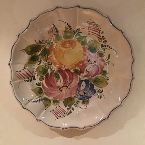 Eldre vintage romantisk fat / tallerken / porselen med blomster / rosé motiv.