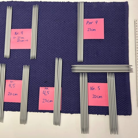 Se gjerne mine andre annonser med strømpepinner. Ved kjøp av fem sett eller mer er prisen 20,- per sett.