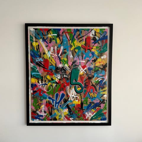 Kunstverket er blitt proft innrammet med kunst glass. Kostet rundt 5 tusen